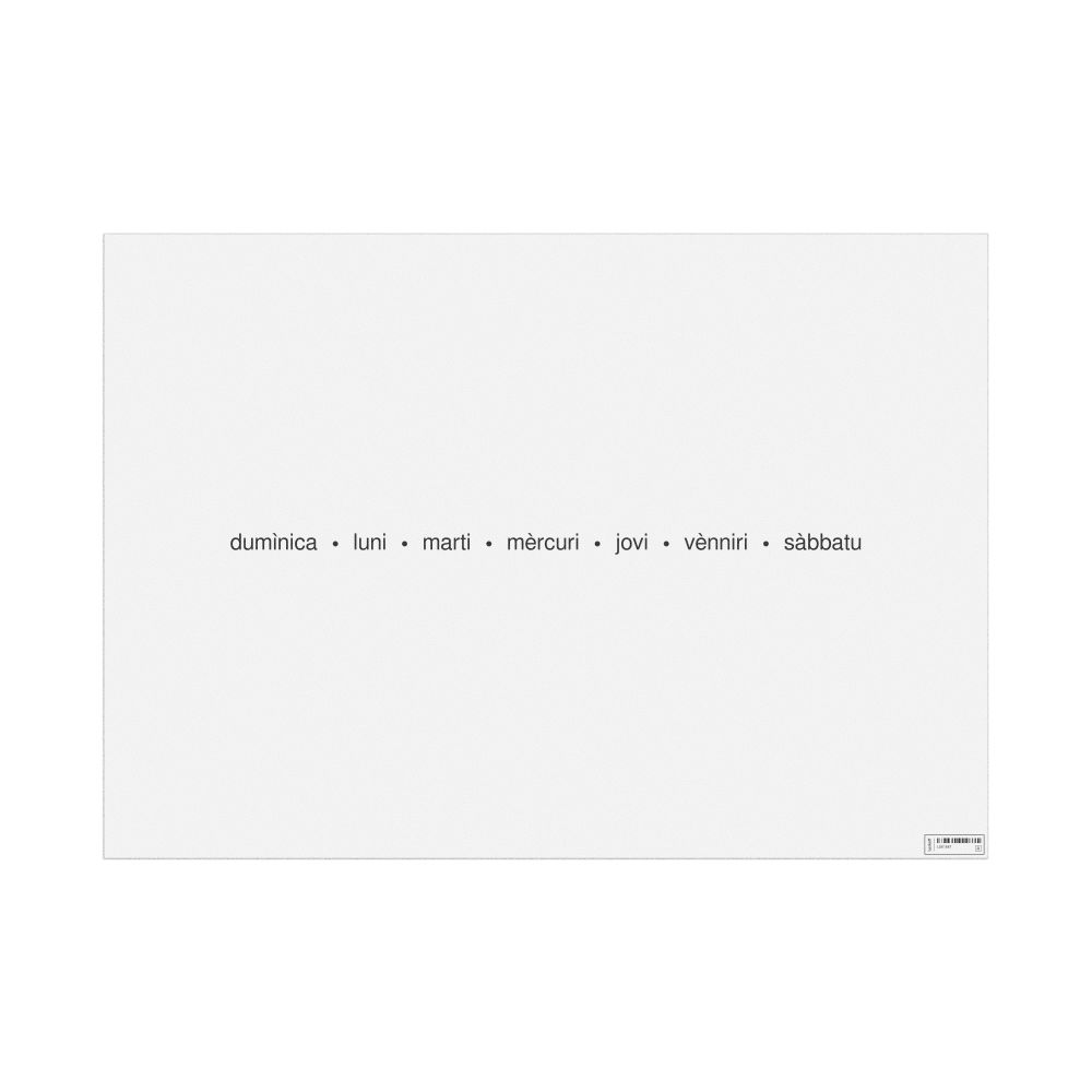 A poster of the days of the week in Sicilian (Jorna dâ simana).