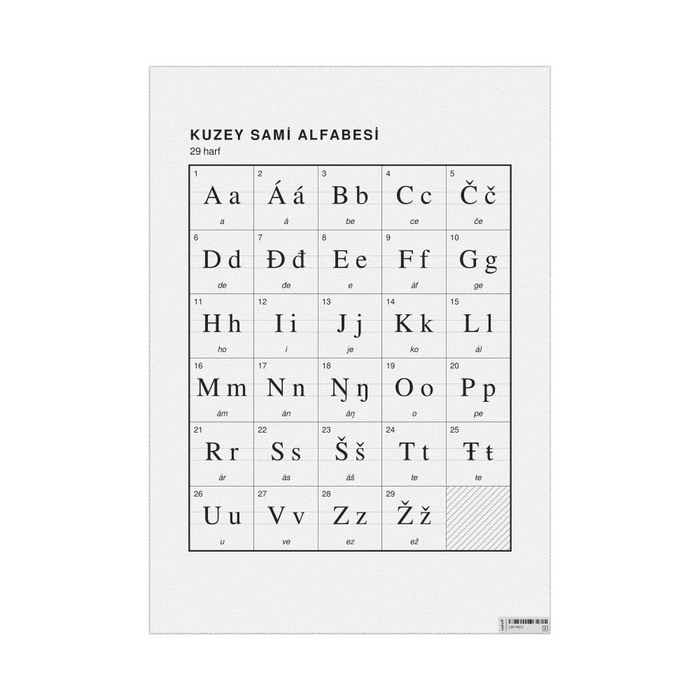 Northern Sámi Alphabet Chart23.4 x 33.1 in (59.4 x 84.1 cm, Poster / Wall Chart), Turkish-Labeled