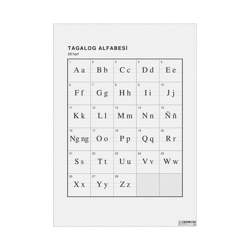 The Tagalog alphabet chart (the full set of letters) labeled in Turkish (Tagalog alfabesi) in the 23.4 x 33.1 in (59.4 x 84.1 cm, poster / wall chart) format.