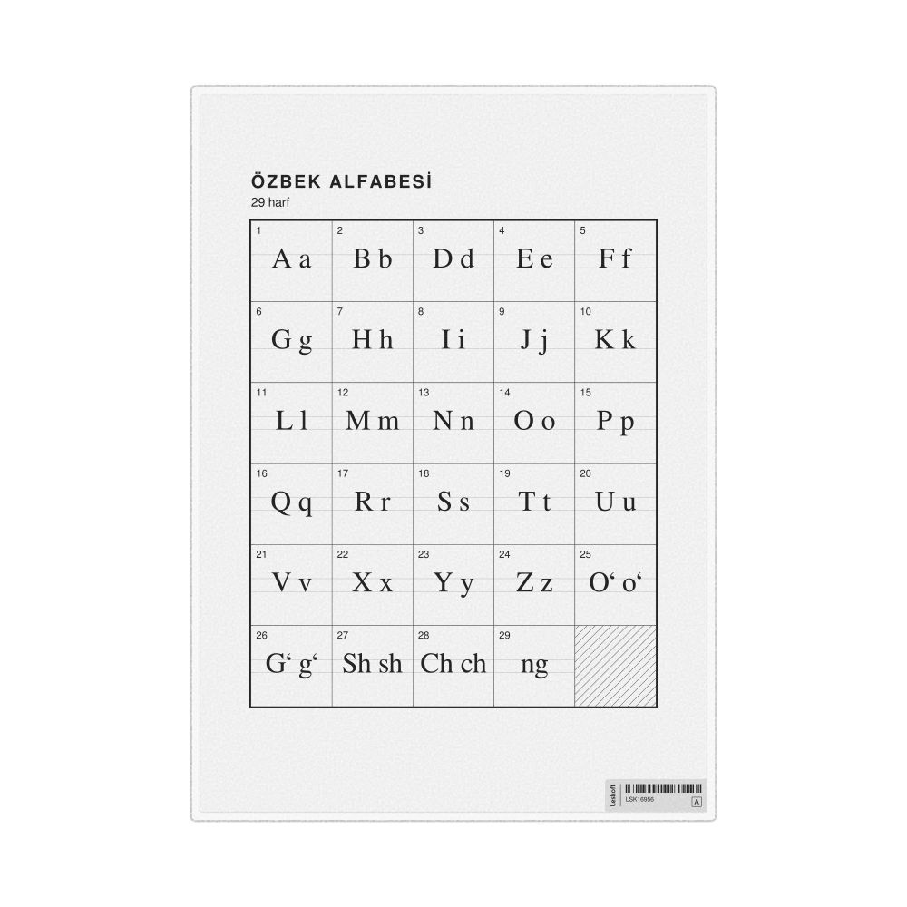 Uzbek Alphabet Chart8.3 x 11.7 in (21.0 x 29.7 cm, Desk Chart, Laminated), Turkish-Labeled