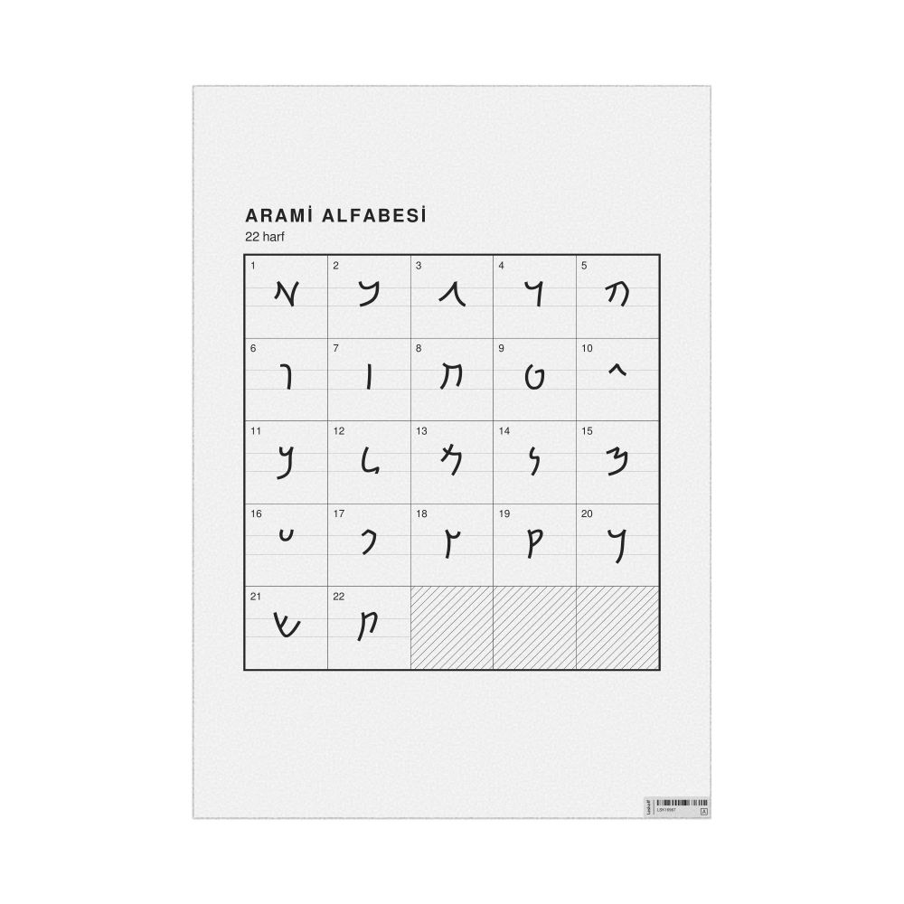 The Aramaic alphabet chart (the full set of letters) labeled in Turkish (Arami alfabesi) in the 23.4 x 33.1 in (59.4 x 84.1 cm, poster / wall chart) format.