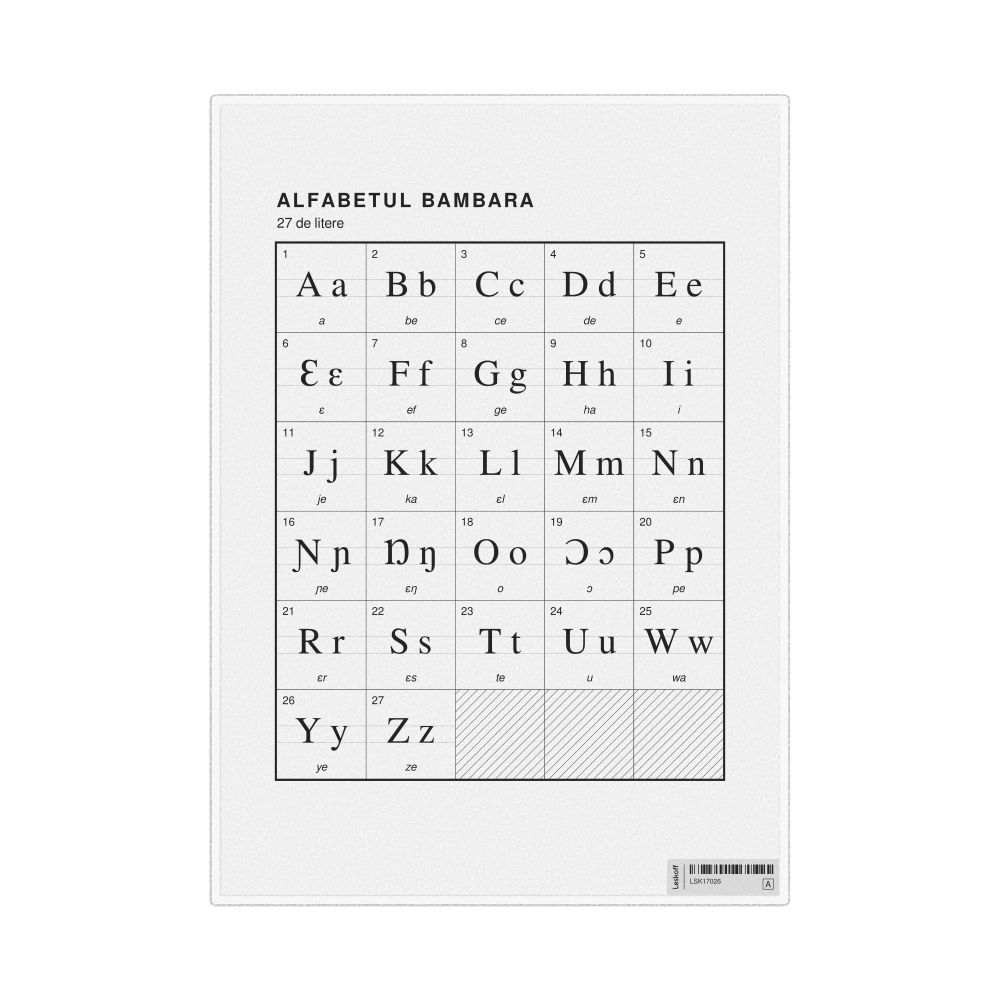 Bambara Alphabet Chart, 23.4 x 33.1 in (59.4 x 84.1 cm, Poster / Wall Chart), Romanian-Labeled