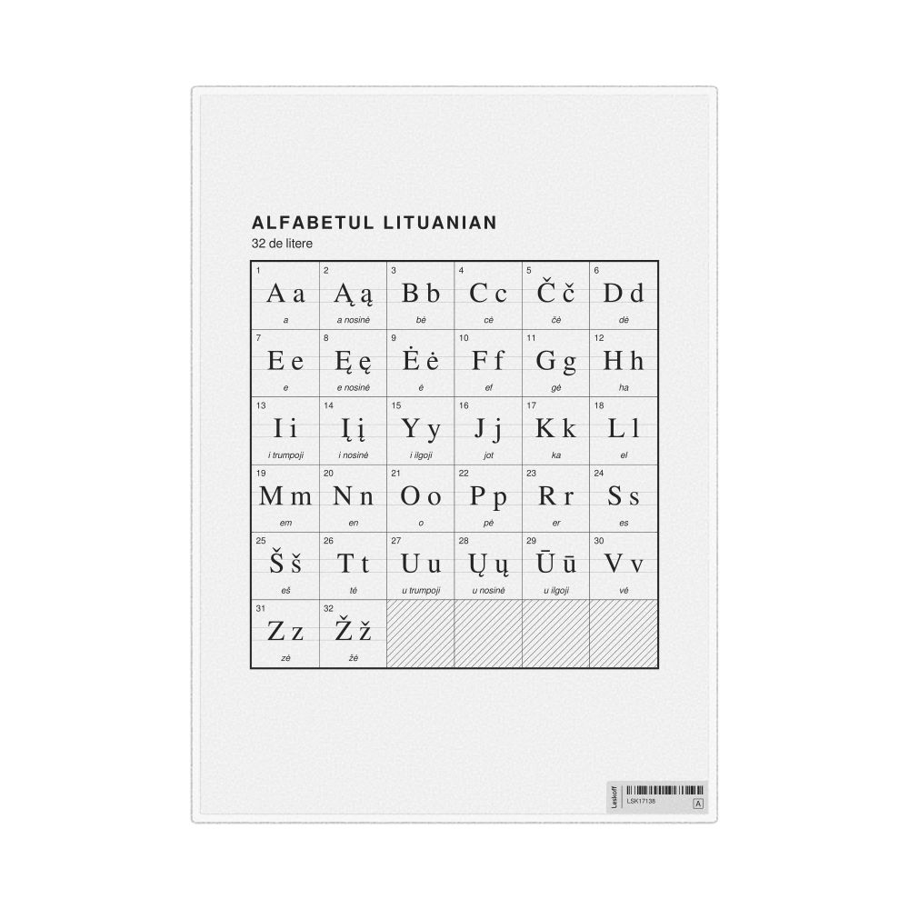 Lithuanian Alphabet Chart8.3 x 11.7 in (21.0 x 29.7 cm, Desk Chart, Laminated), Romanian-Labeled