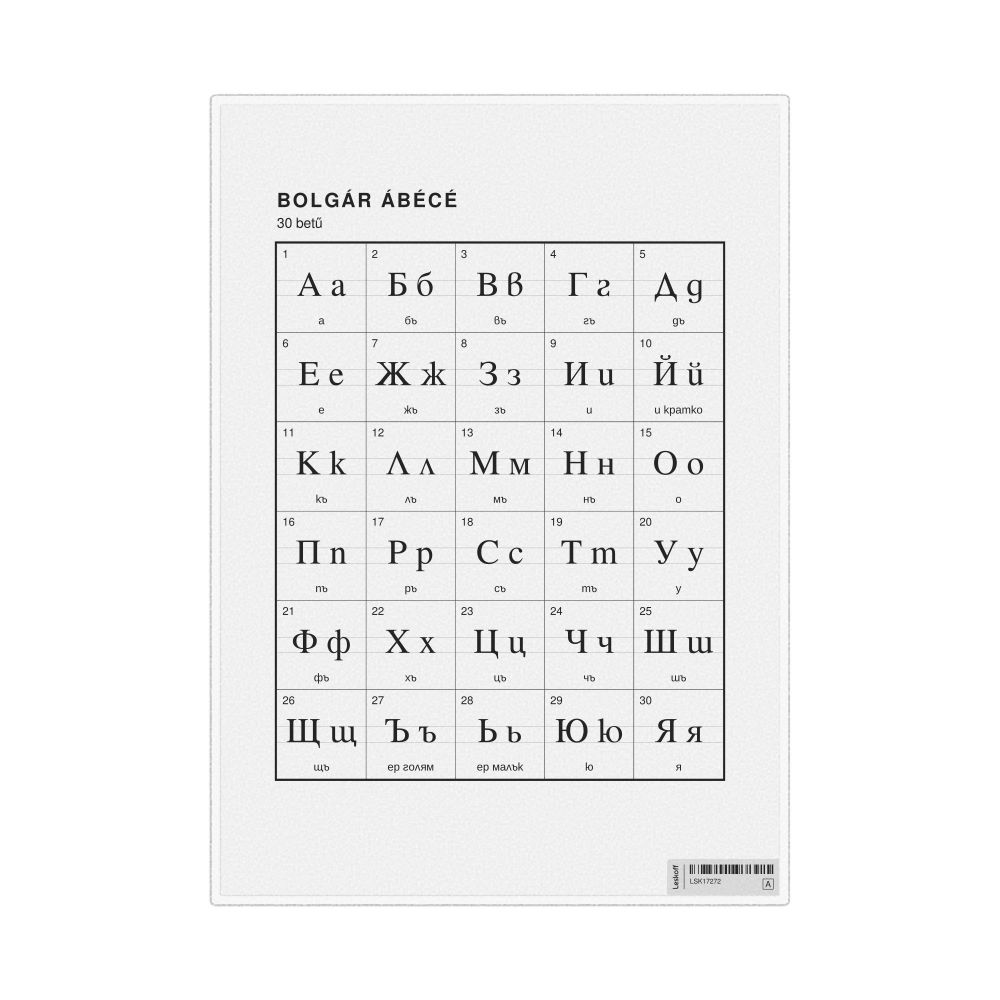 The Bulgarian alphabet chart (the full set of letters) labeled in Hungarian (Bolgár ábécé) in the 8.3 x 11.7 in (21.0 x 29.7 cm, desk chart, laminated) format.