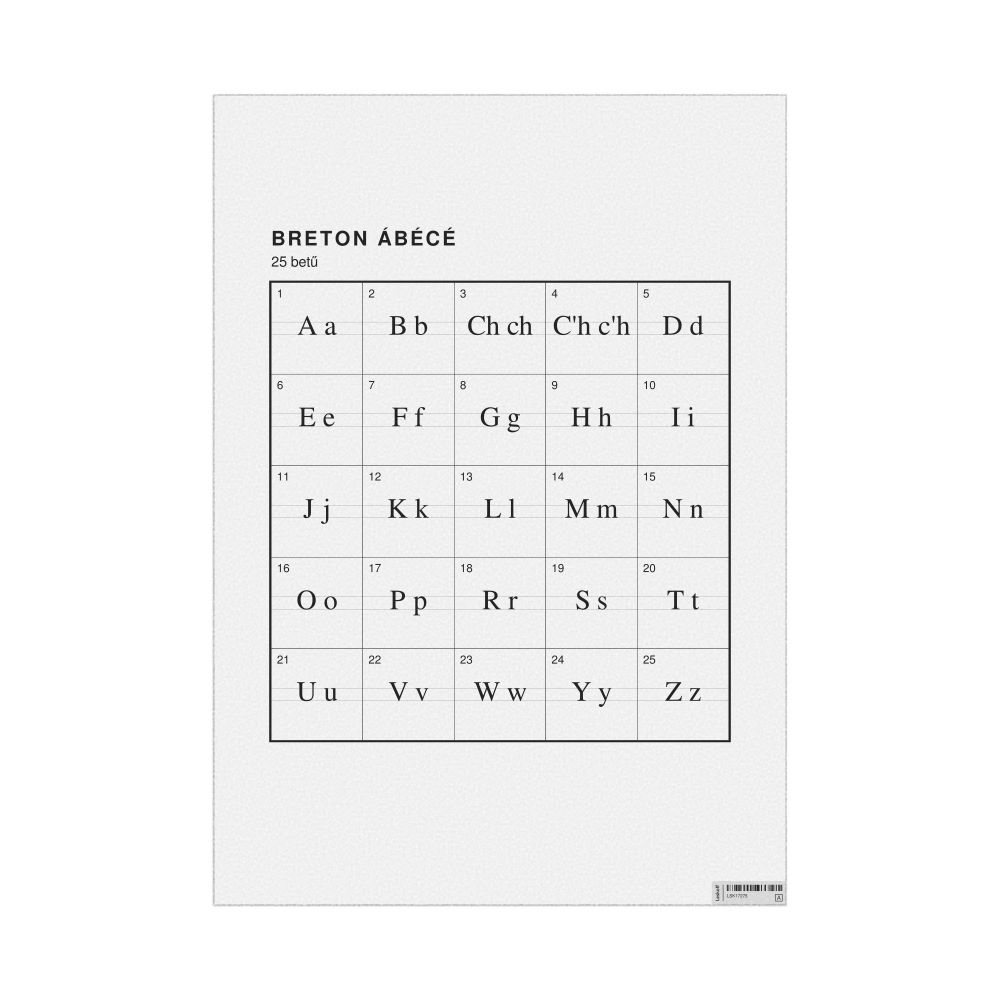 The Breton alphabet chart (the full set of letters) labeled in Hungarian (Breton ábécé) in the 23.4 x 33.1 in (59.4 x 84.1 cm, poster / wall chart) format.