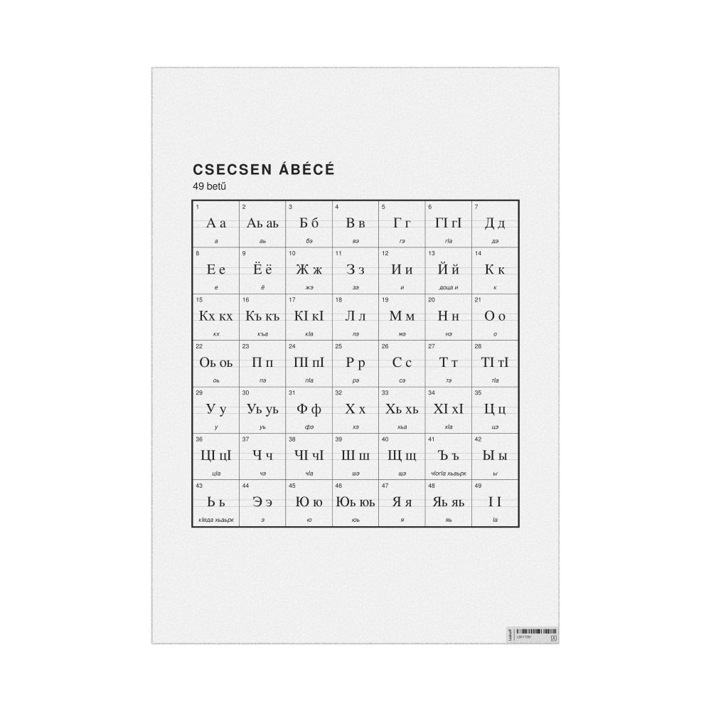 The Chechen alphabet chart (the full set of letters) labeled in Hungarian (Csecsen ábécé) in the 23.4 x 33.1 in (59.4 x 84.1 cm, poster / wall chart) format.