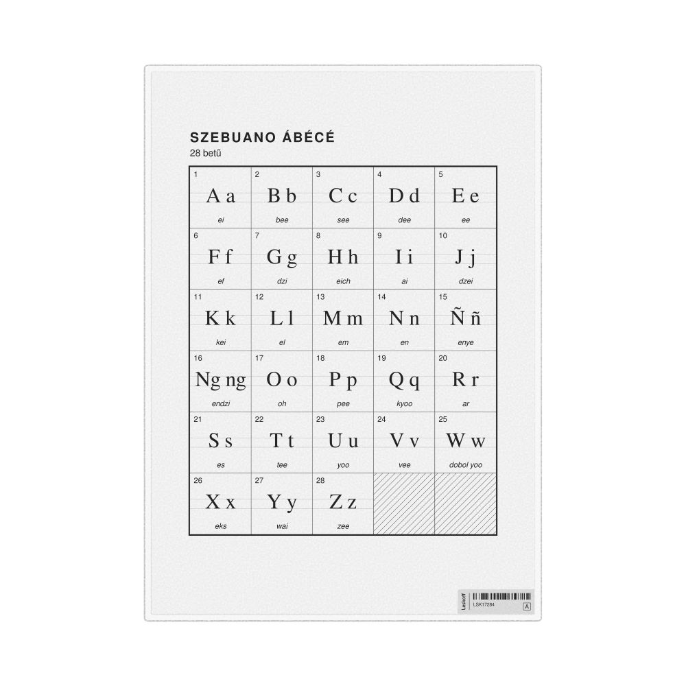 The Cebuano alphabet chart (the full set of letters) labeled in Hungarian (Szebuano ábécé) in the 8.3 x 11.7 in (21.0 x 29.7 cm, desk chart, laminated) format.