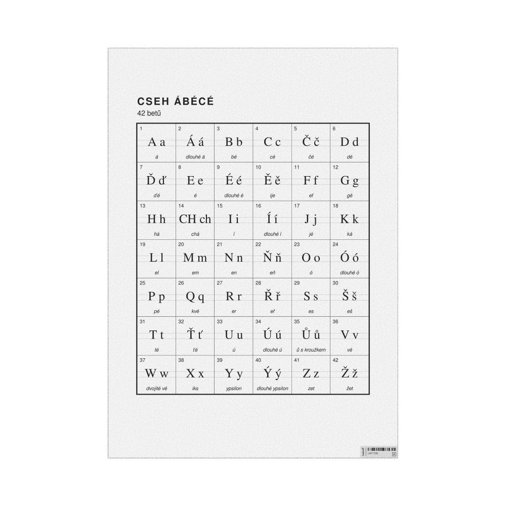 Czech Alphabet Chart23.4 x 33.1 in (59.4 x 84.1 cm, Poster / Wall Chart), Hungarian-Labeled