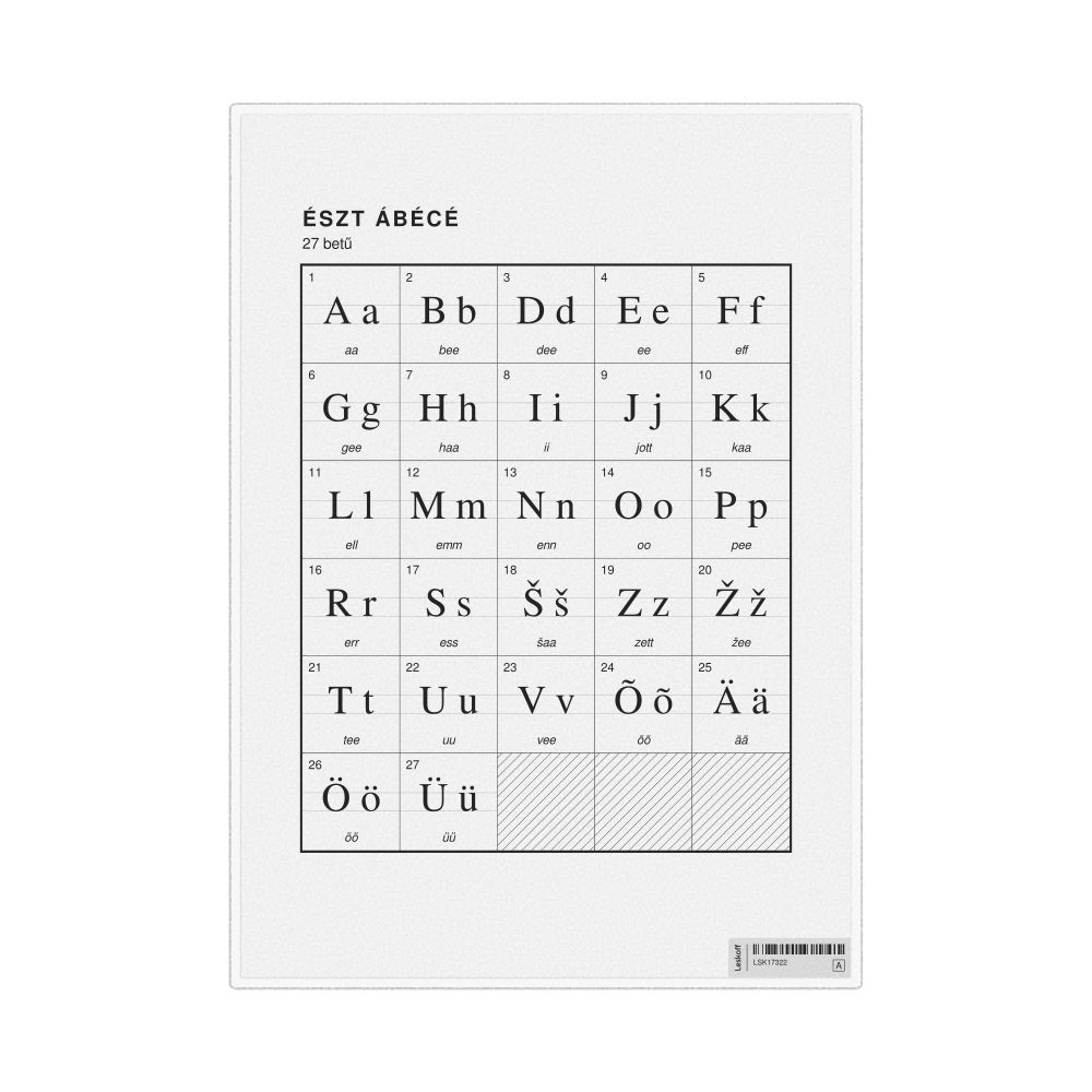 The Estonian alphabet chart (the full set of letters) labeled in Hungarian (Észt ábécé) in the 8.3 x 11.7 in (21.0 x 29.7 cm, desk chart, laminated) format.