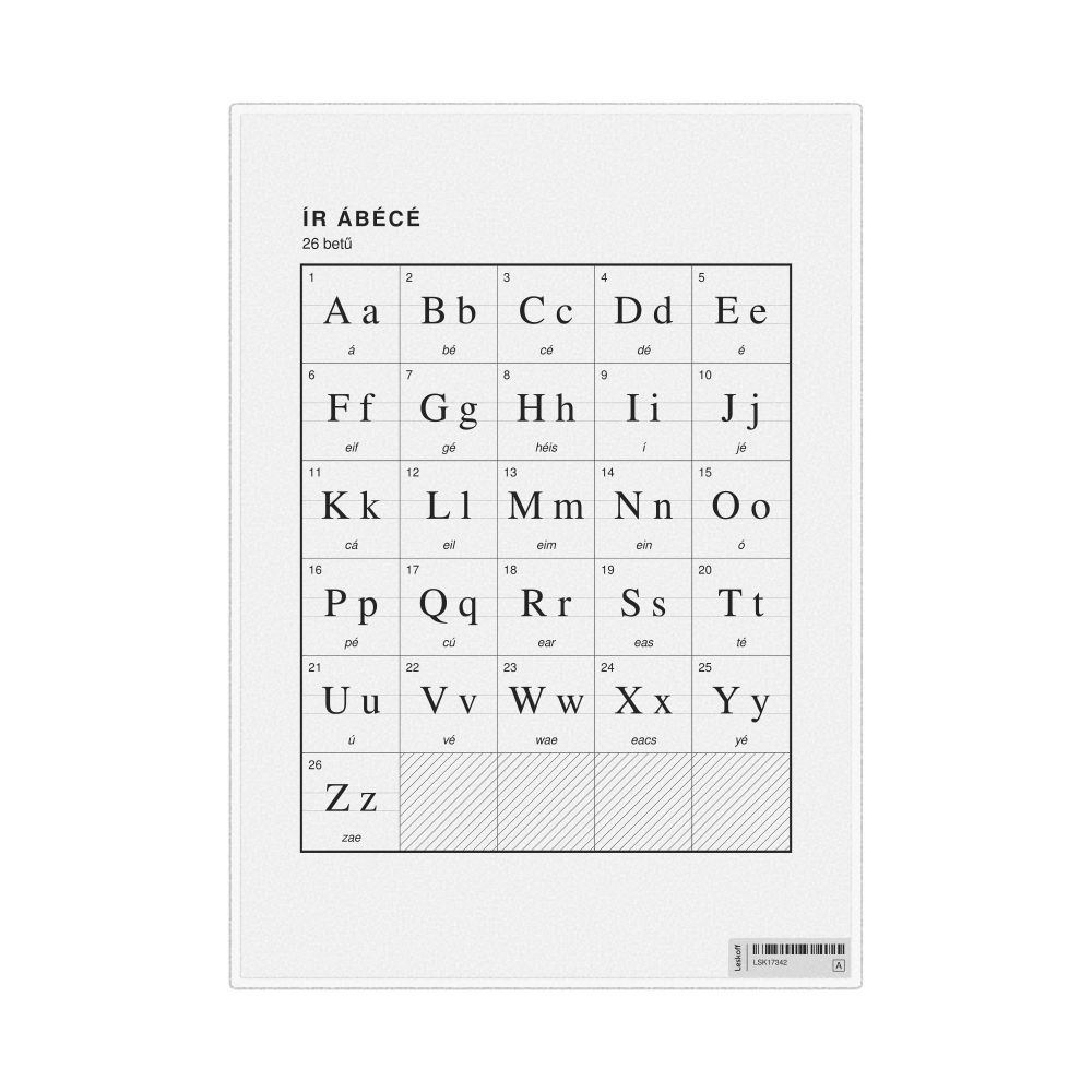 The Irish alphabet chart with Hungarian metatext.