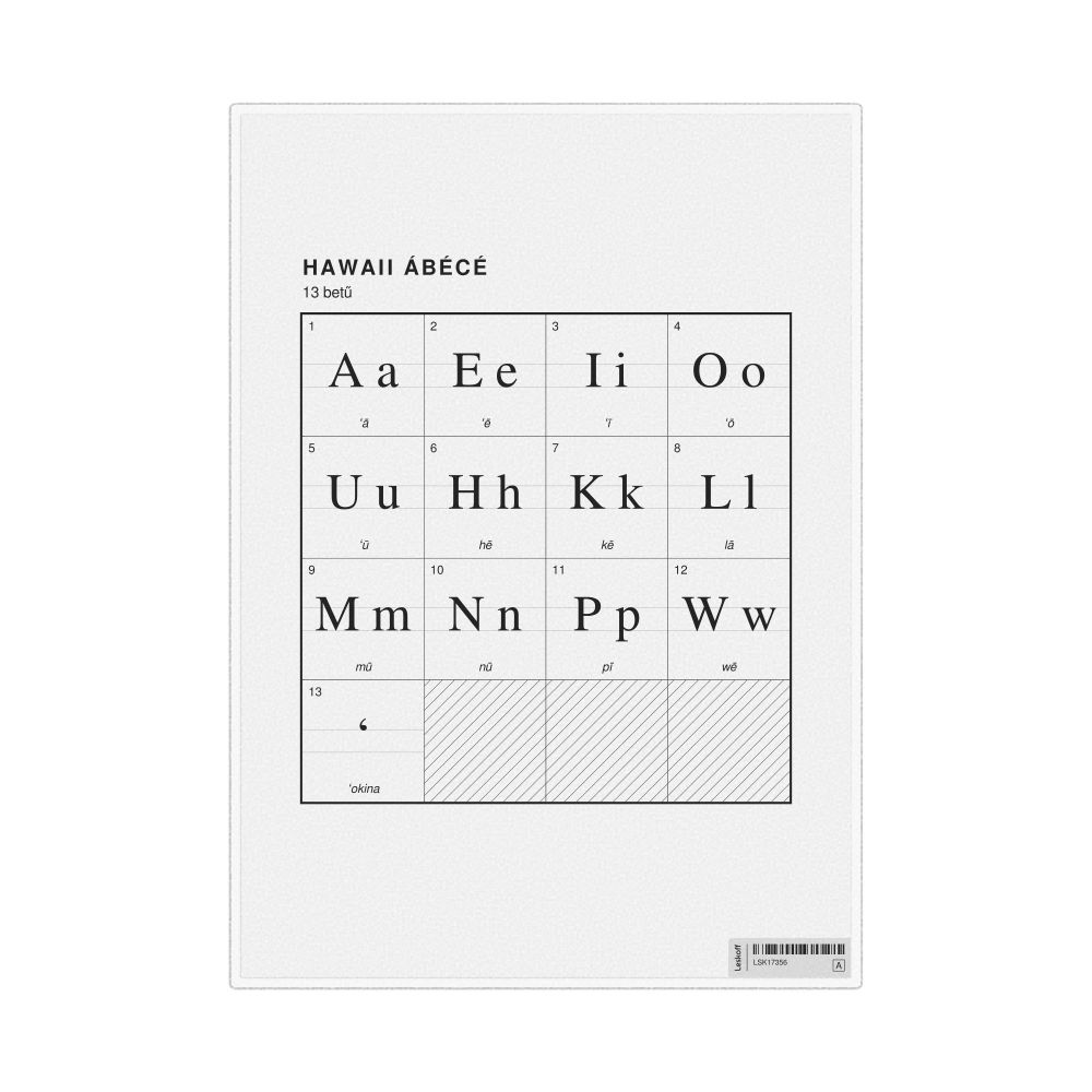 Hawaiian Alphabet Chart, 23.4 x 33.1 in (59.4 x 84.1 cm, Poster / Wall Chart), Hungarian-Labeled