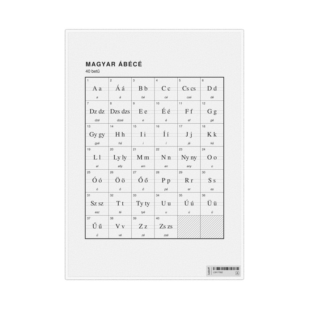 The Hungarian alphabet chart (the full set of letters) labeled in Hungarian (Magyar ábécé) in the 8.3 x 11.7 in (21.0 x 29.7 cm, desk chart, laminated) format.