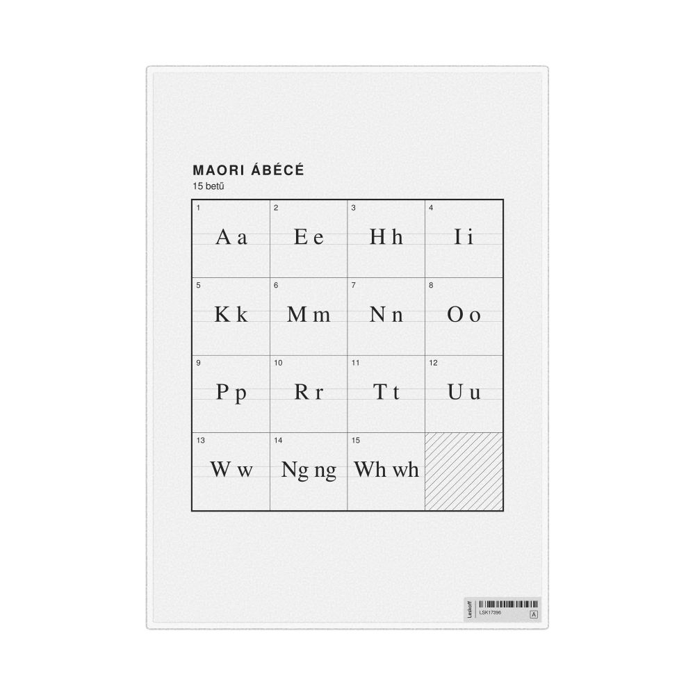 The Māori alphabet chart (the full set of letters) labeled in Hungarian (Maori ábécé) in the 8.3 x 11.7 in (21.0 x 29.7 cm, desk chart, laminated) format.