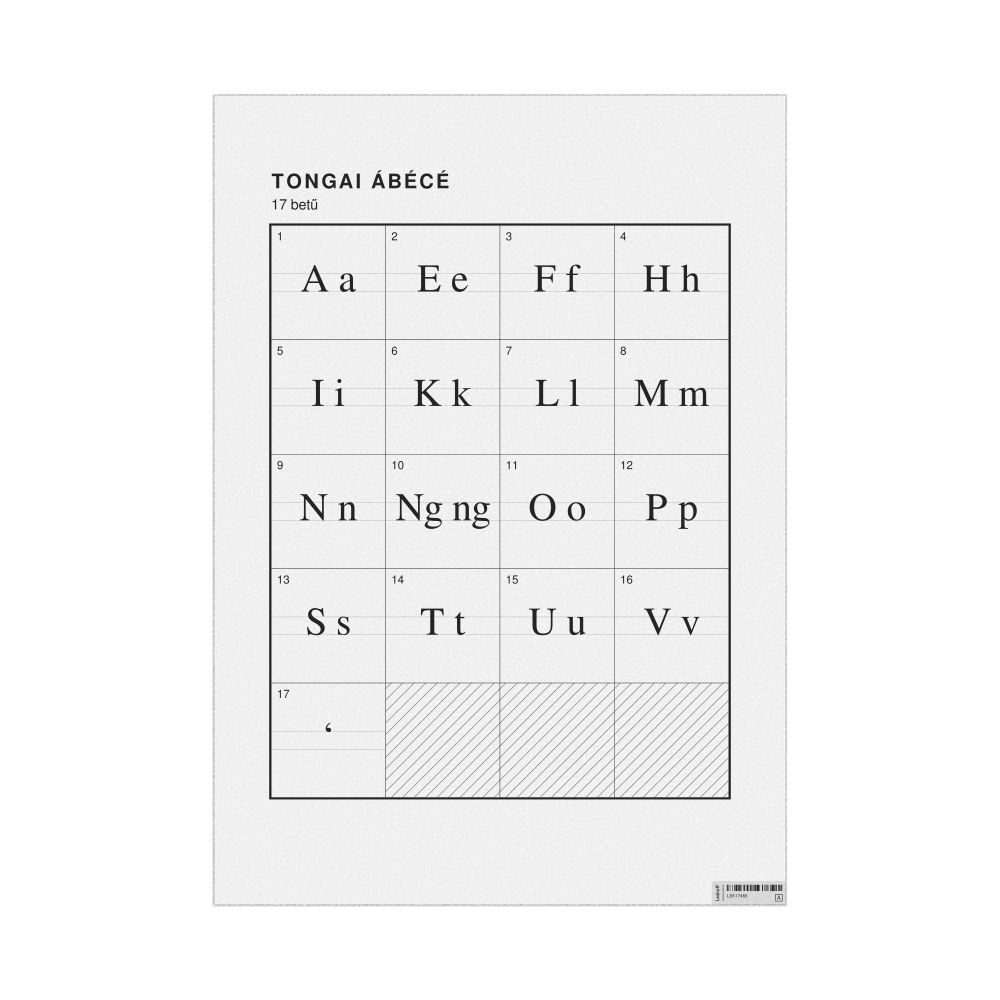 The Tongan alphabet chart (the full set of letters) labeled in Hungarian (Tongai ábécé) in the 23.4 x 33.1 in (59.4 x 84.1 cm, poster / wall chart) format.