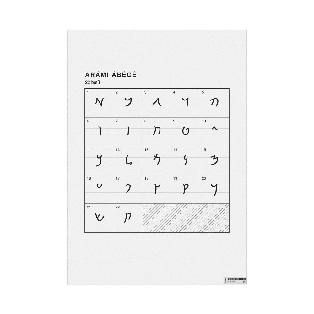 The Aramaic alphabet chart (the full set of letters) labeled in Hungarian (Arámi ábécé) in the 23.4 x 33.1 in (59.4 x 84.1 cm, poster / wall chart) format.