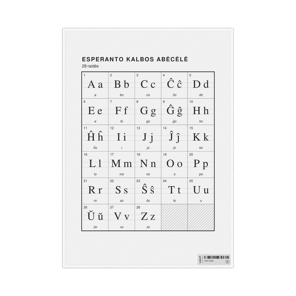 Esperanto Alphabet Chart, 23.4 x 33.1 in (59.4 x 84.1 cm, Poster / Wall Chart), Lithuanian-Labeled