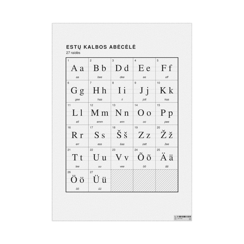 Estonian Alphabet Chart23.4 x 33.1 in (59.4 x 84.1 cm, Poster / Wall Chart), Lithuanian-Labeled