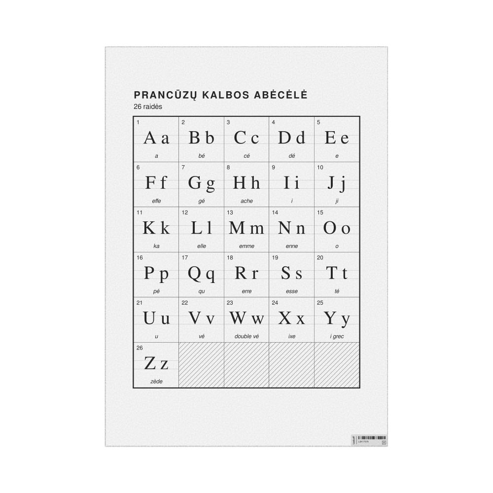 French Alphabet Chart23.4 x 33.1 in (59.4 x 84.1 cm, Poster / Wall Chart), Lithuanian-Labeled