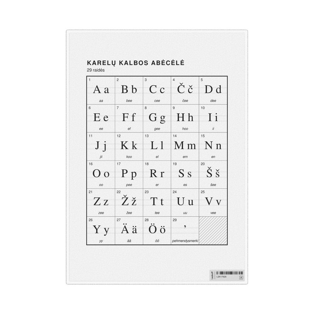 Karelian Alphabet Chart8.3 x 11.7 in (21.0 x 29.7 cm, Desk Chart, Laminated), Lithuanian-Labeled