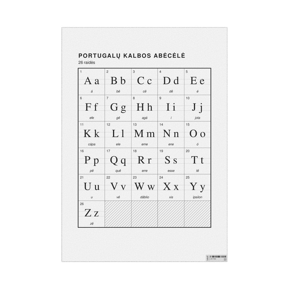 The Portuguese alphabet chart with Lithuanian metatext.