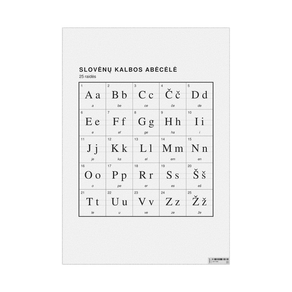 The Slovene alphabet chart (the full set of letters) labeled in Lithuanian (Slovėnų kalbos abėcėlė) in the 23.4 x 33.1 in (59.4 x 84.1 cm, poster / wall chart) format.