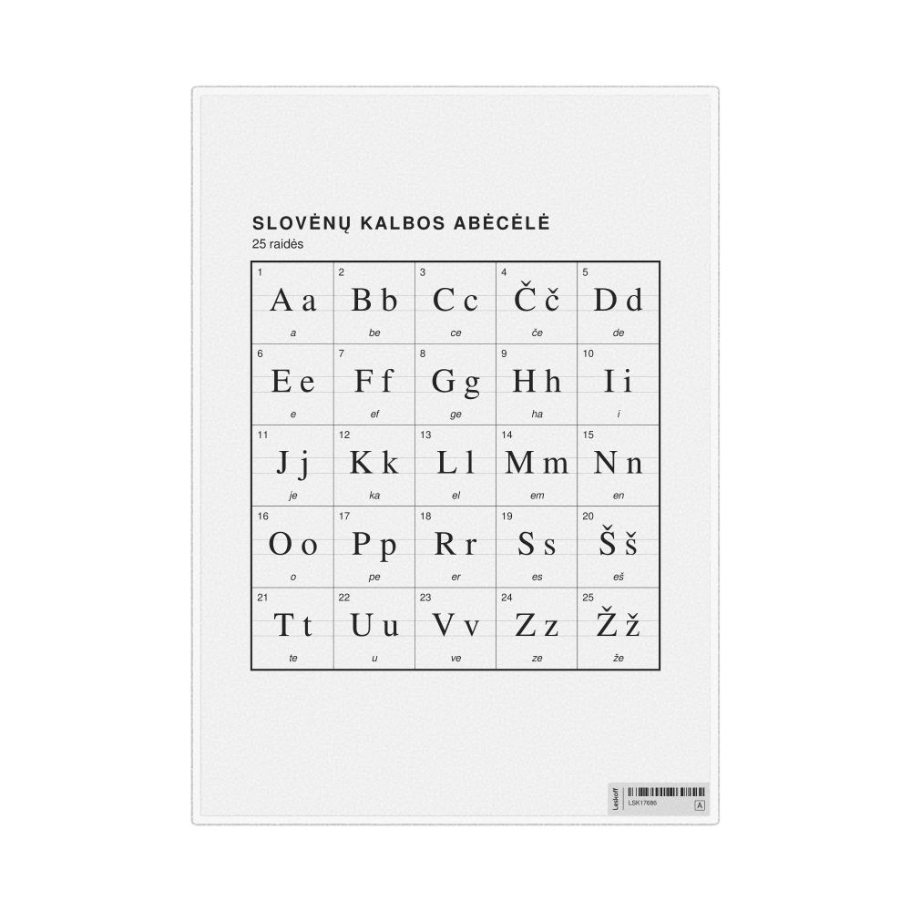 The Slovene alphabet chart (the full set of letters) labeled in Lithuanian (Slovėnų kalbos abėcėlė) in the 8.3 x 11.7 in (21.0 x 29.7 cm, desk chart, laminated) format.