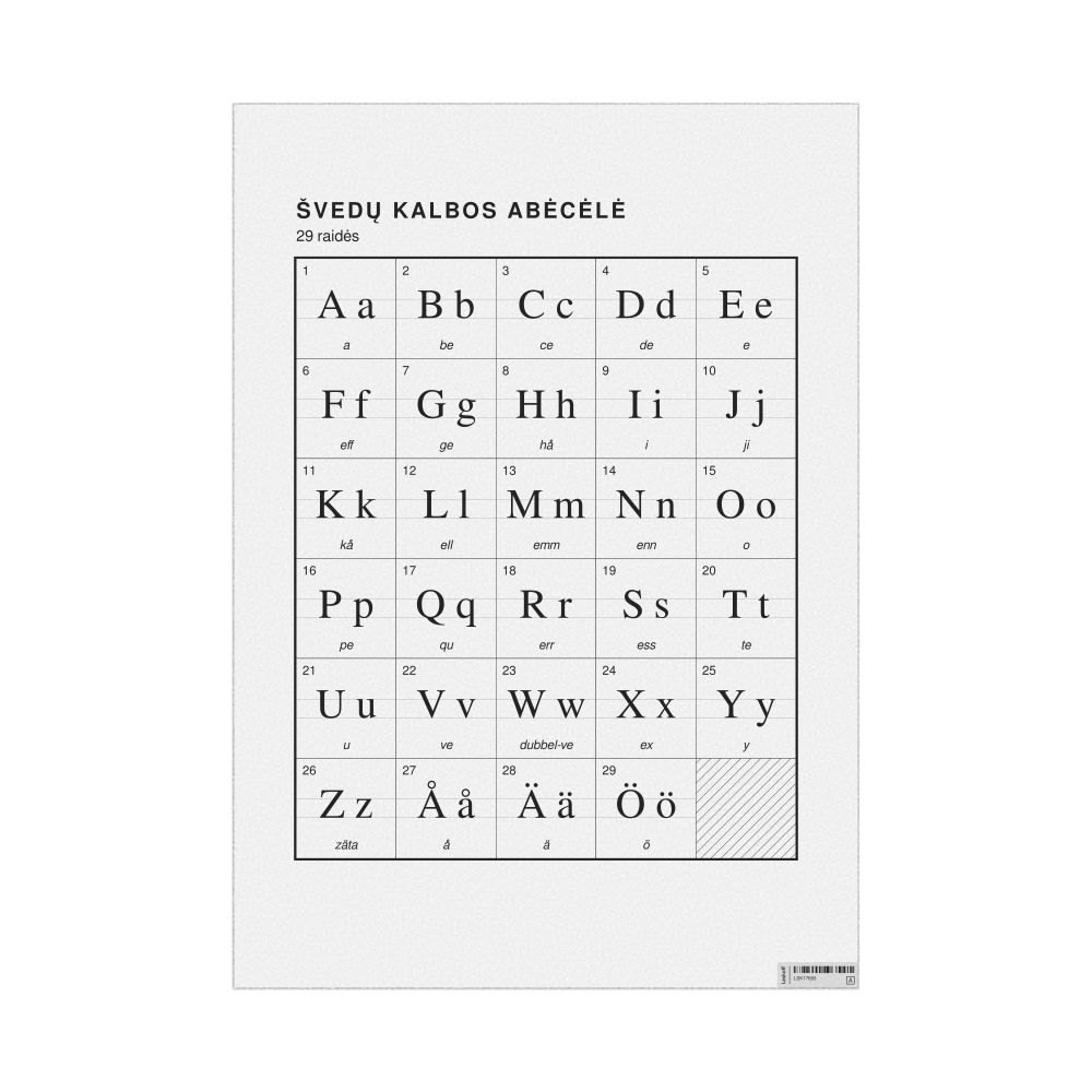 The Swedish alphabet chart with Lithuanian metatext.