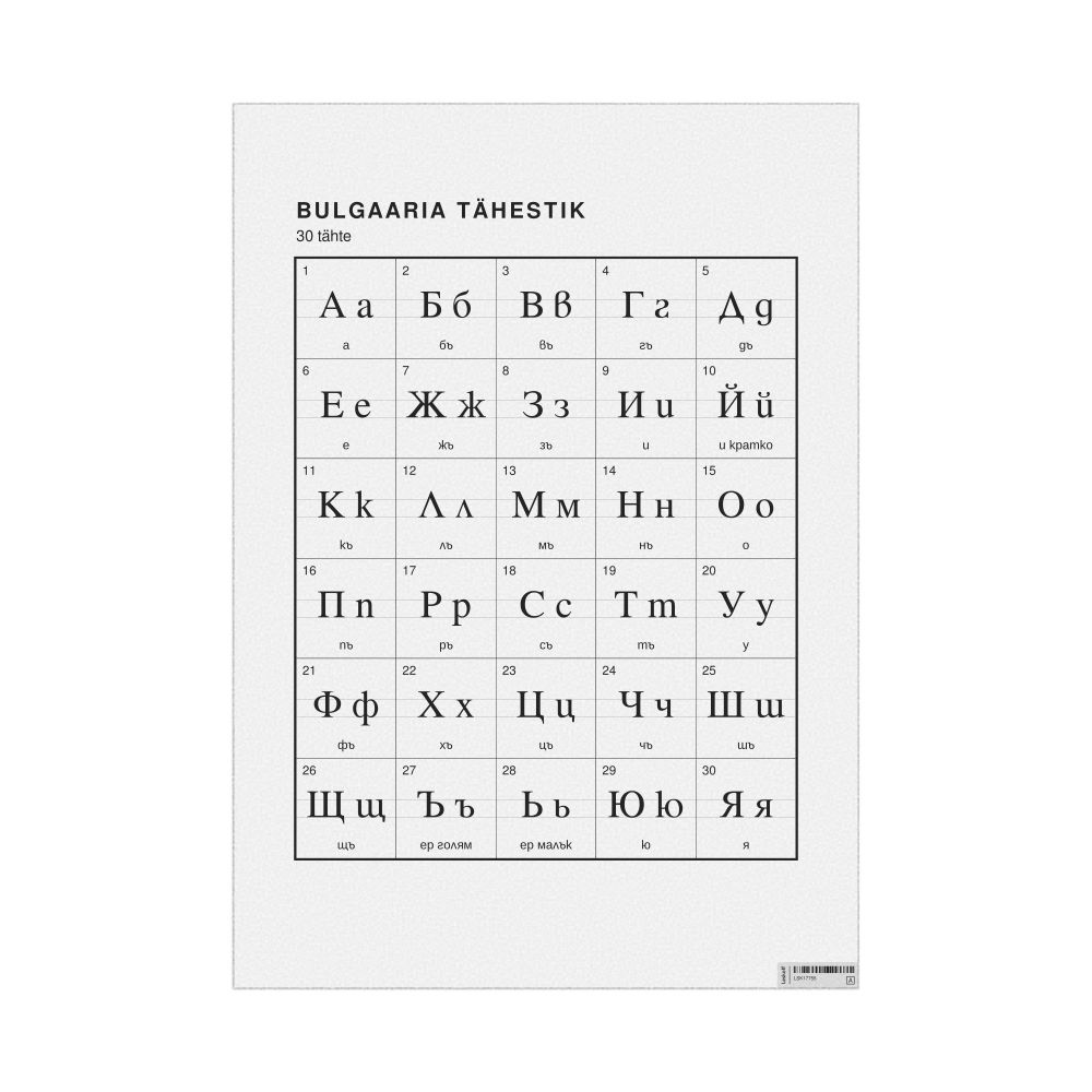 The Bulgarian alphabet chart (the full set of letters) labeled in Estonian (Bulgaaria tähestik) in the 23.4 x 33.1 in (59.4 x 84.1 cm, poster / wall chart) format.
