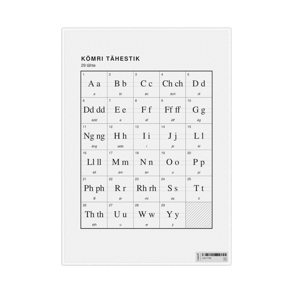The Welsh alphabet chart (the full set of letters) labeled in Estonian (Kõmri tähestik) in the 8.3 x 11.7 in (21.0 x 29.7 cm, desk chart, laminated) format.