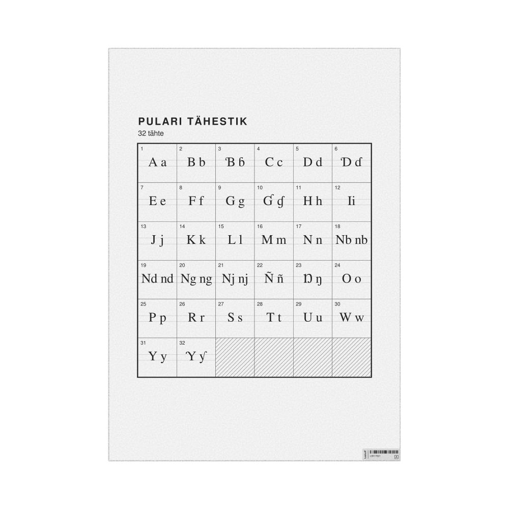 The Pular alphabet chart (the full set of letters) labeled in Estonian (Pulari tähestik) in the 23.4 x 33.1 in (59.4 x 84.1 cm, poster / wall chart) format.