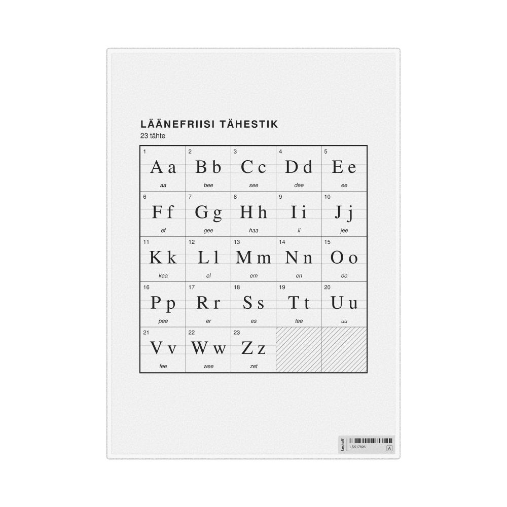 The West Frisian alphabet chart (the full set of letters) labeled in Estonian (Läänefriisi tähestik) in the 8.3 x 11.7 in (21.0 x 29.7 cm, desk chart, laminated) format.