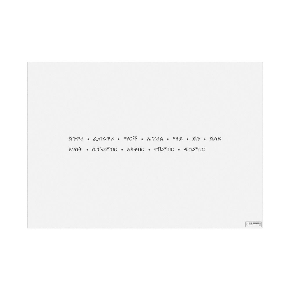 A poster of the months of the year in Amharic (የዓመቱ ወራት).