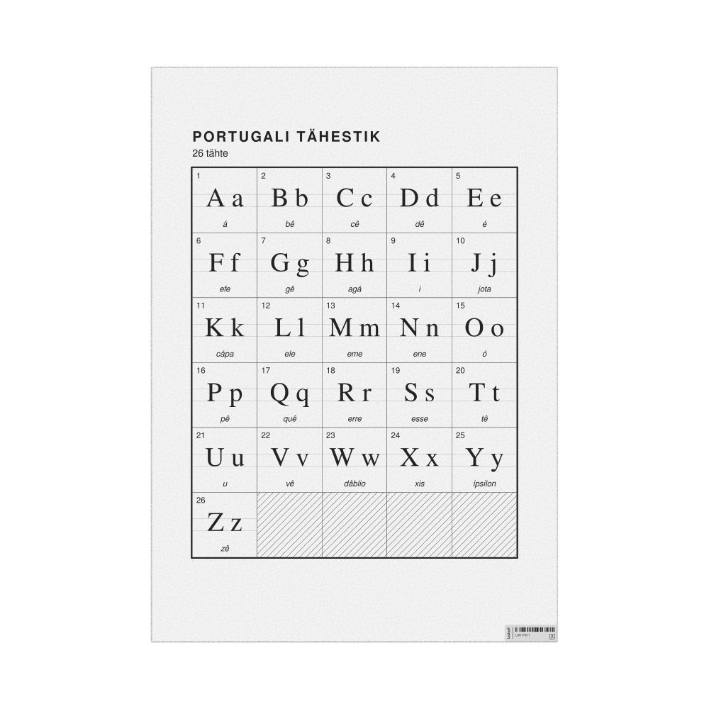 The Portuguese alphabet chart (the full set of letters) labeled in Estonian (Portugali tähestik) in the 23.4 x 33.1 in (59.4 x 84.1 cm, poster / wall chart) format.
