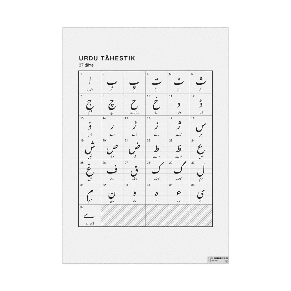 Urdu Alphabet Chart23.4 x 33.1 in (59.4 x 84.1 cm, Poster / Wall Chart), Estonian-Labeled