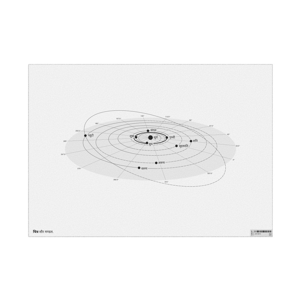 A poster of the Solar System in Hindi (सौर मण्डल).