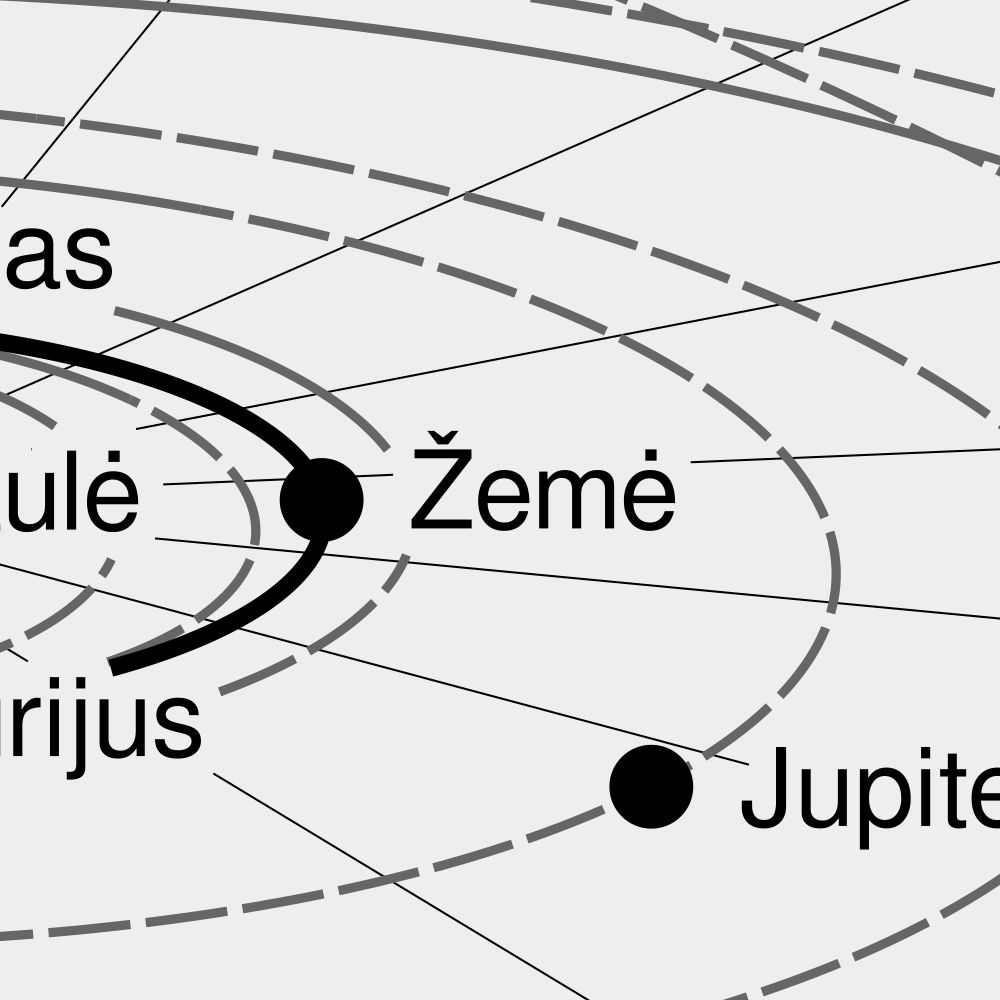 A poster of the Solar System in Lithuanian (Saulės sistema).