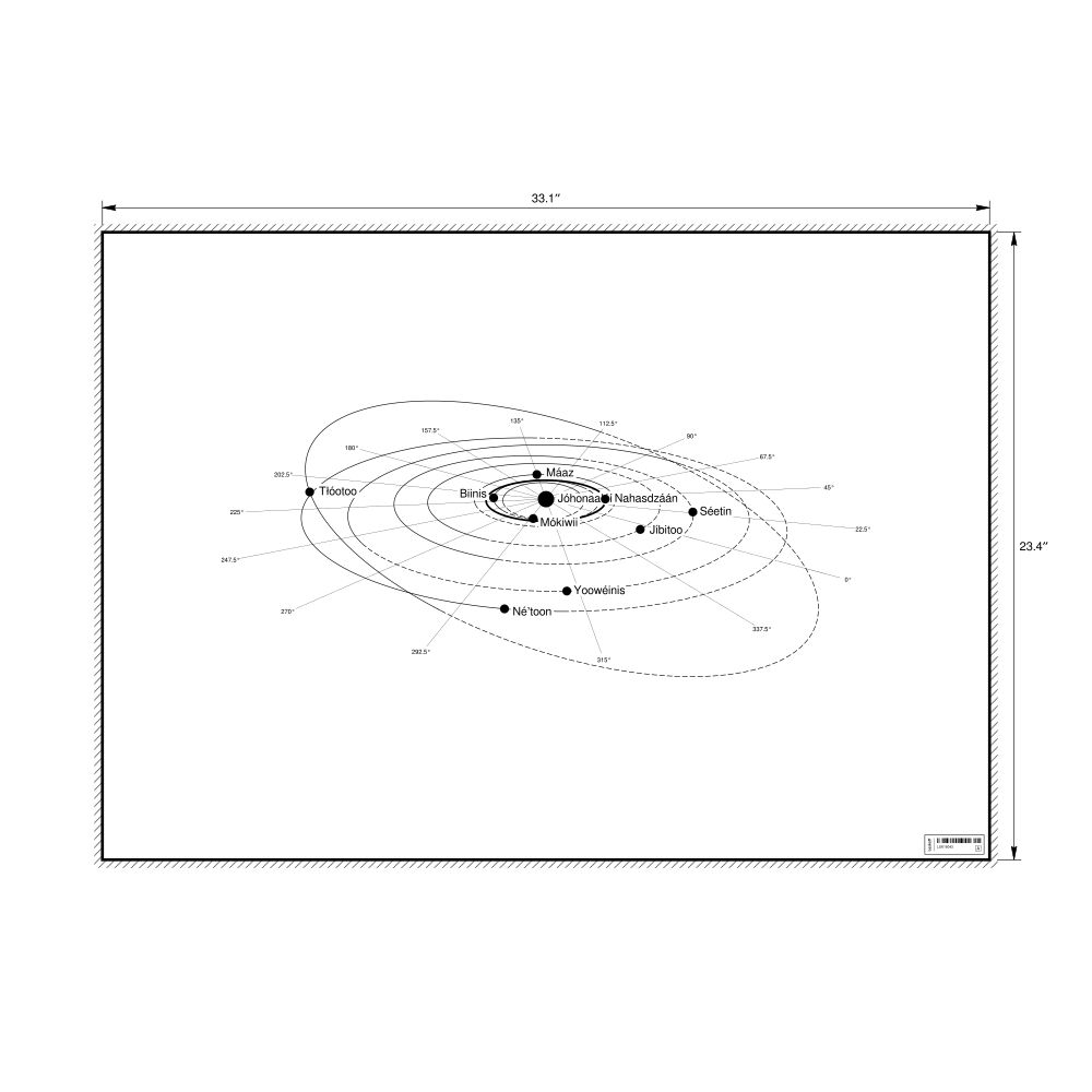 A poster of the Solar System in Navajo (Yágháhookáán biiʼ Hólónígíí).