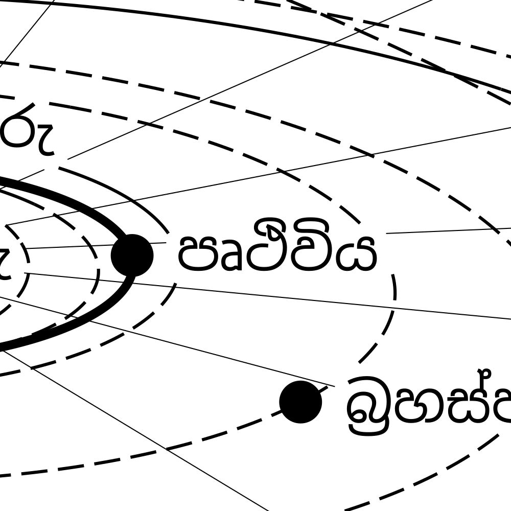 A poster of the Solar System in Sinhala (සෞරග්රහ මණ්ඩලය).