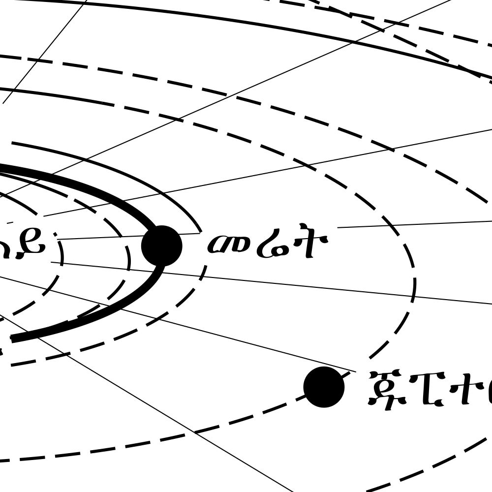 A poster of the Solar System in Amharic (የፀሐይ ሥርዓተ ፈለክ).