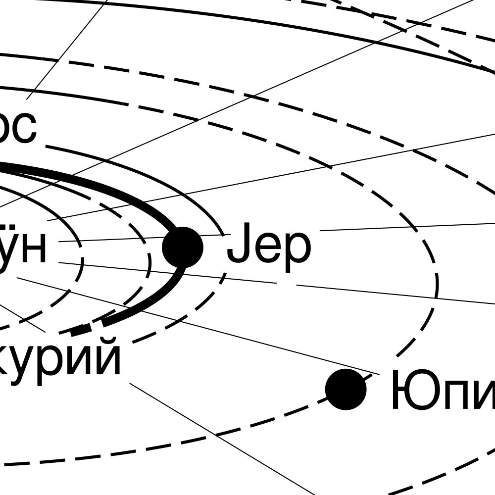 A poster of the Solar System in Altai (Кӱнниҥ системазы).