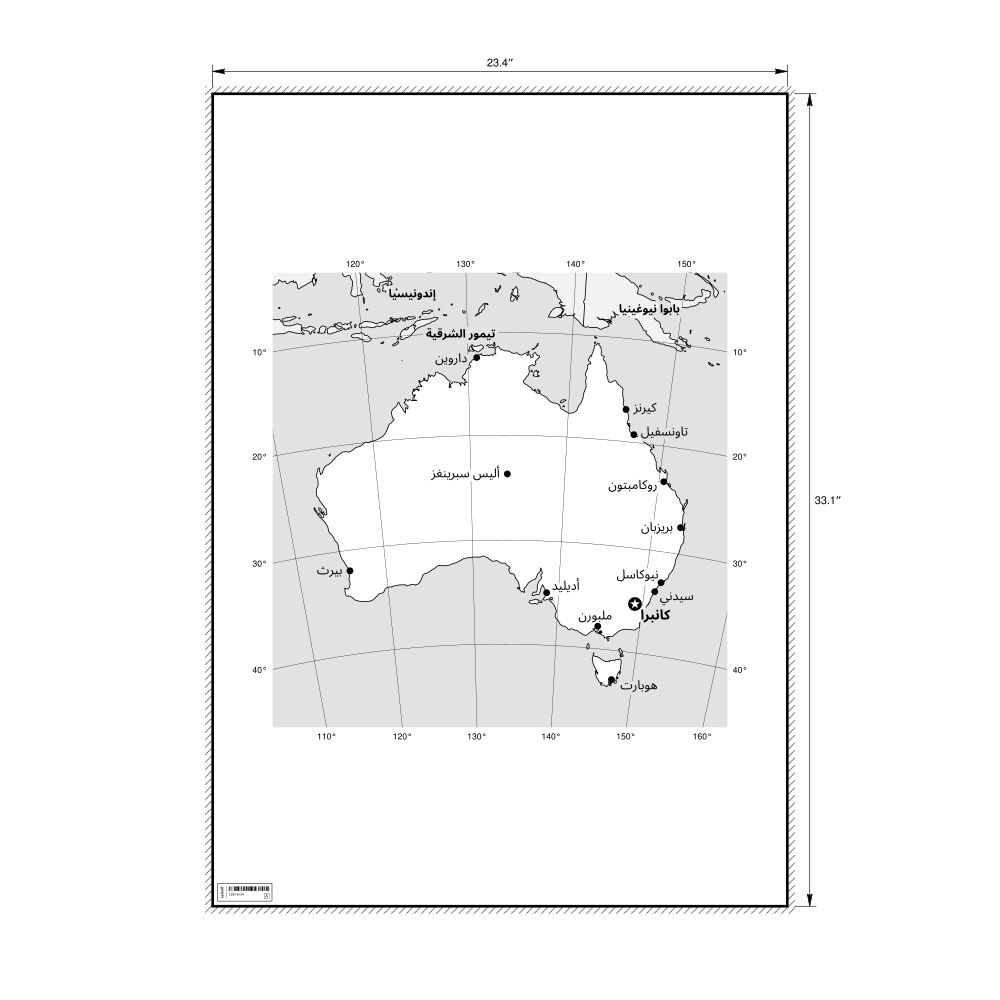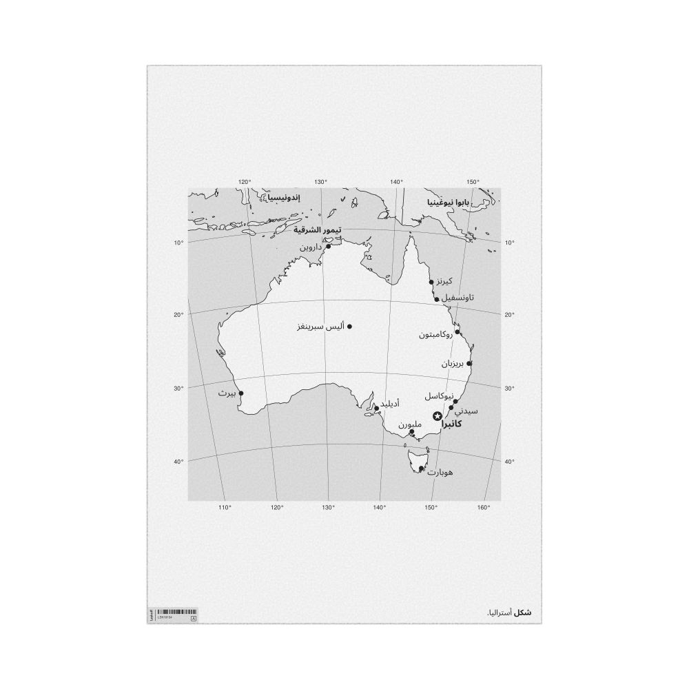 A poster featuring the map of Australia in Arabic (أستراليا).