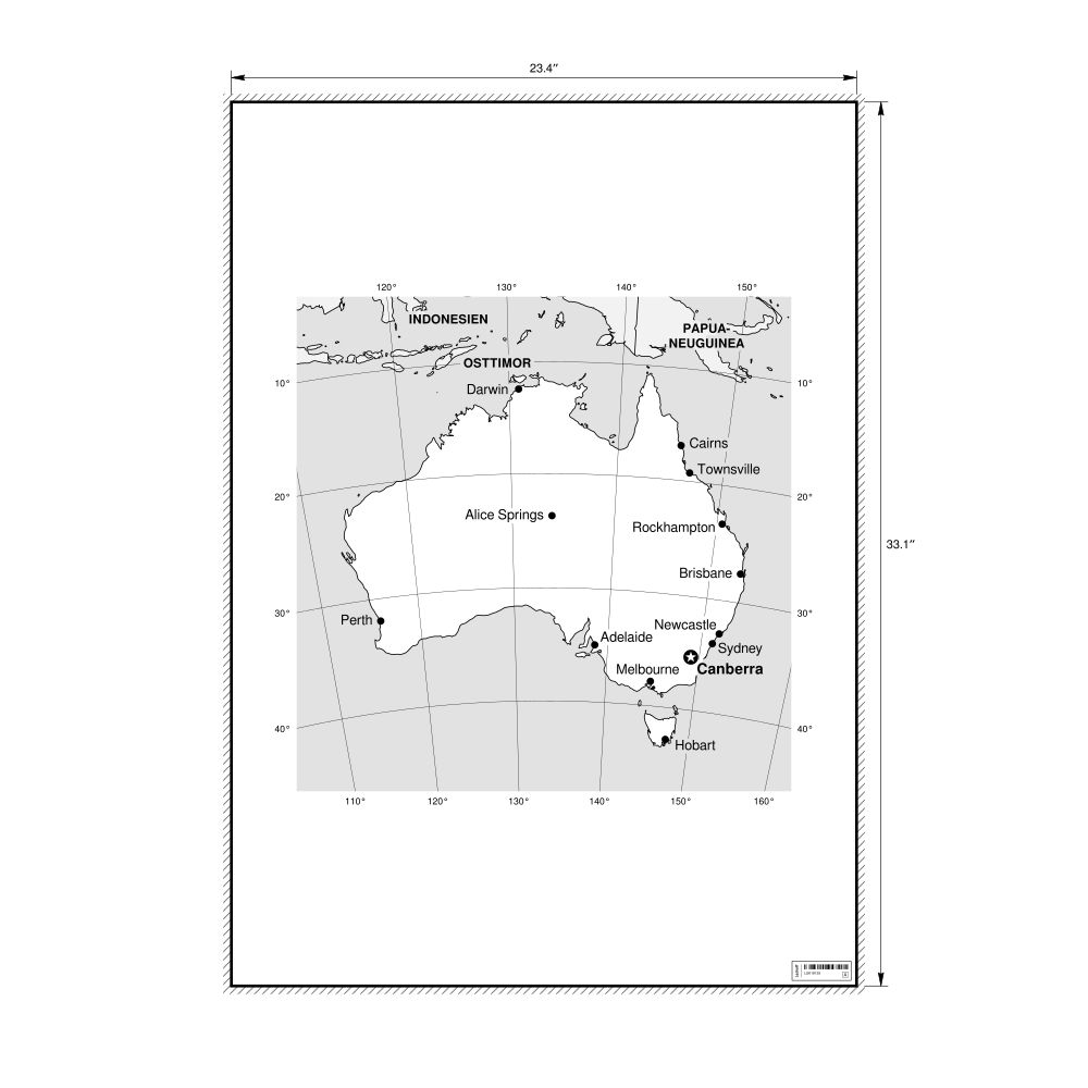 A poster featuring the map of Australia in German (Australien).
