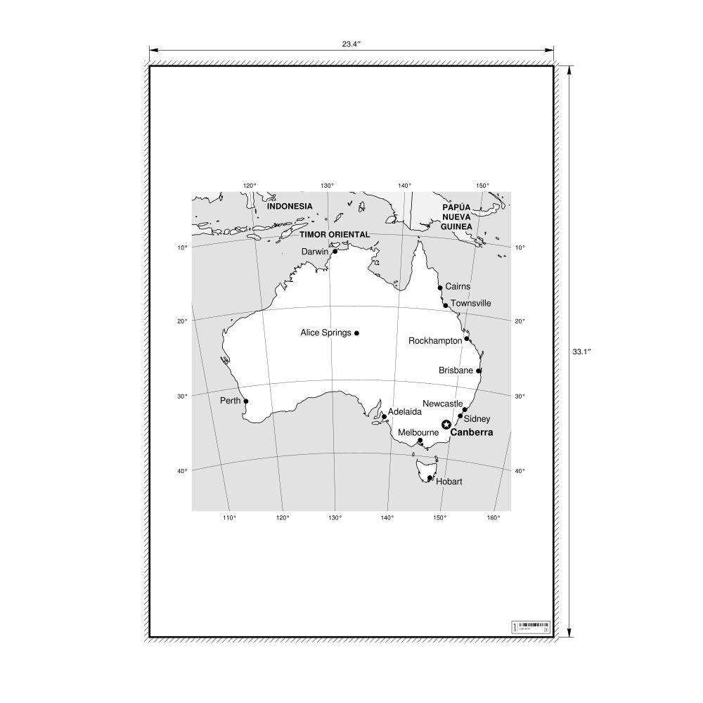 A poster featuring the map of Australia in Spanish (Australia).