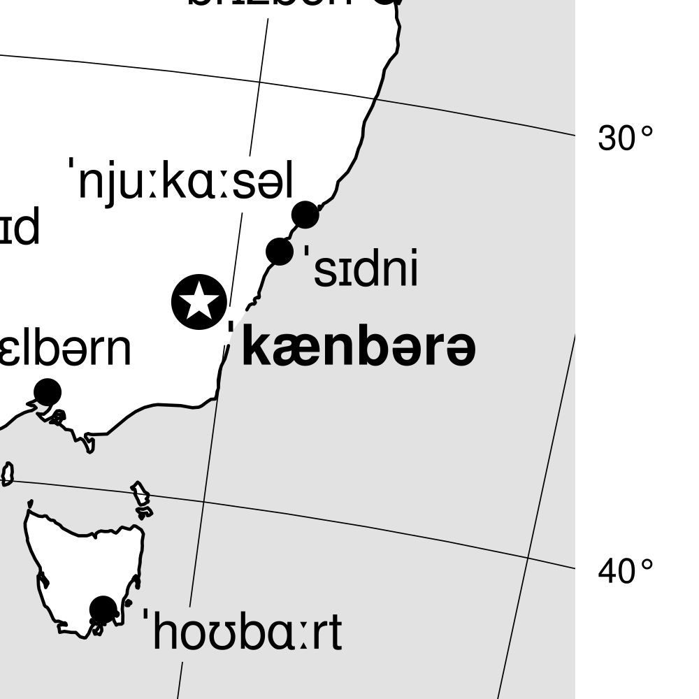 A poster featuring the map of Australia in IPA (International Phonetic Alphabet) for English.