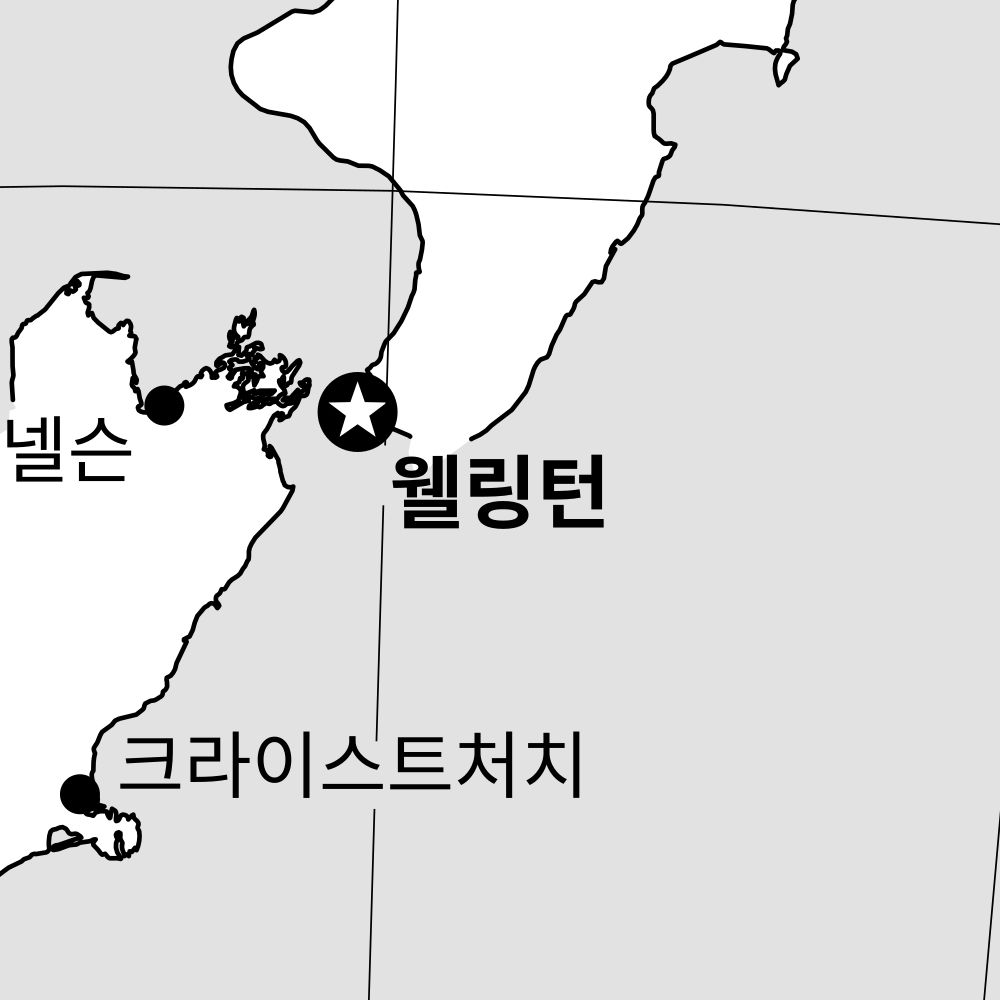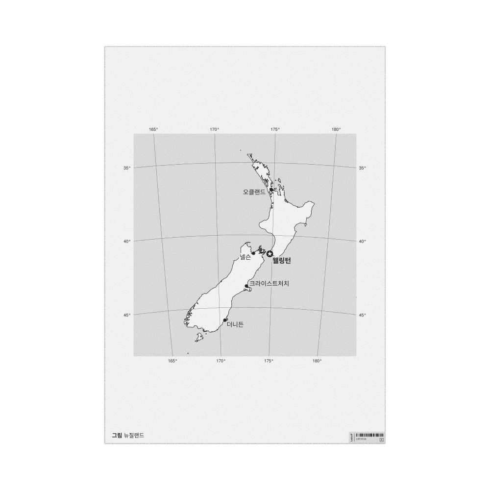 A poster featuring the map of New Zealand in Korean (뉴질랜드).