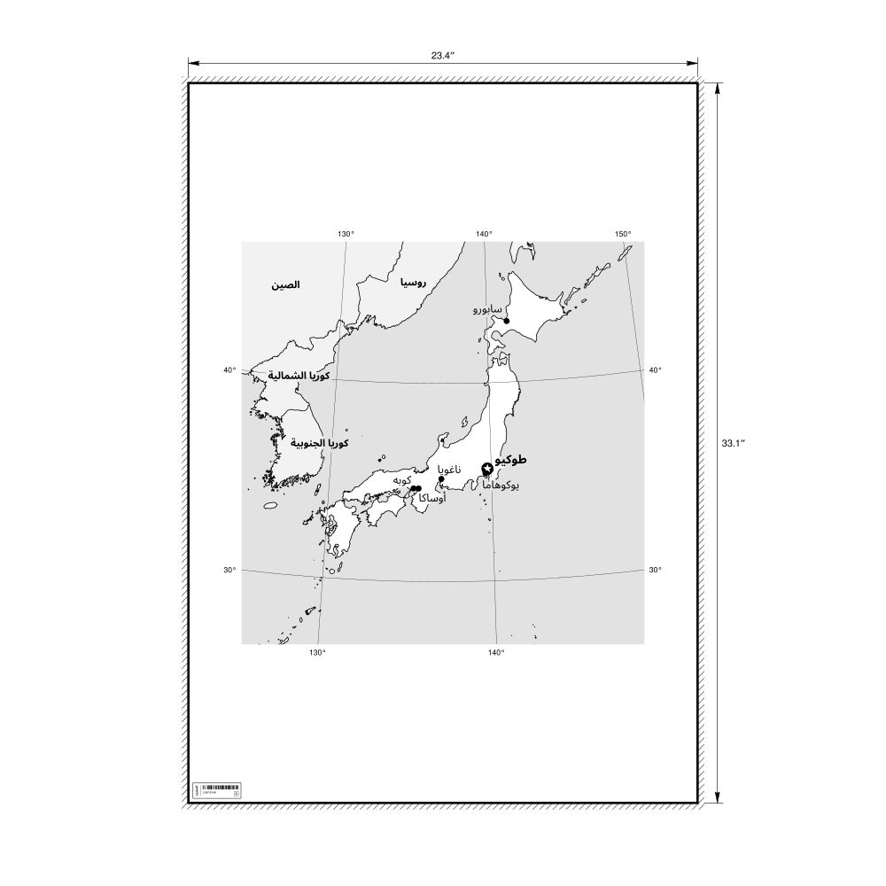 A poster featuring the map of Japan in Arabic (اليابان).