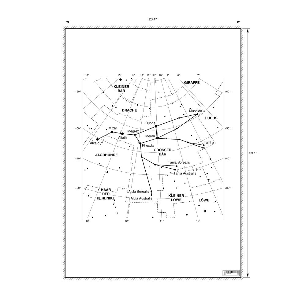 A poster featuring the Ursa Major constellation chart in German (Großer Bär).