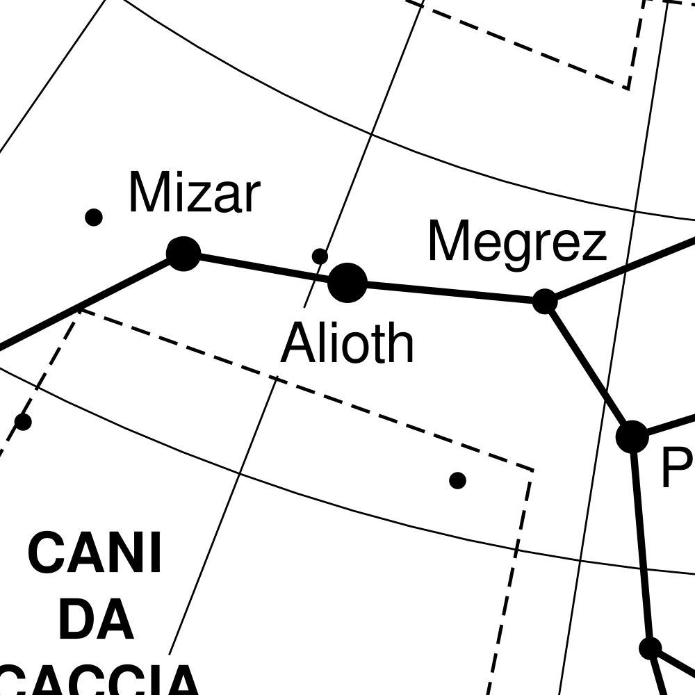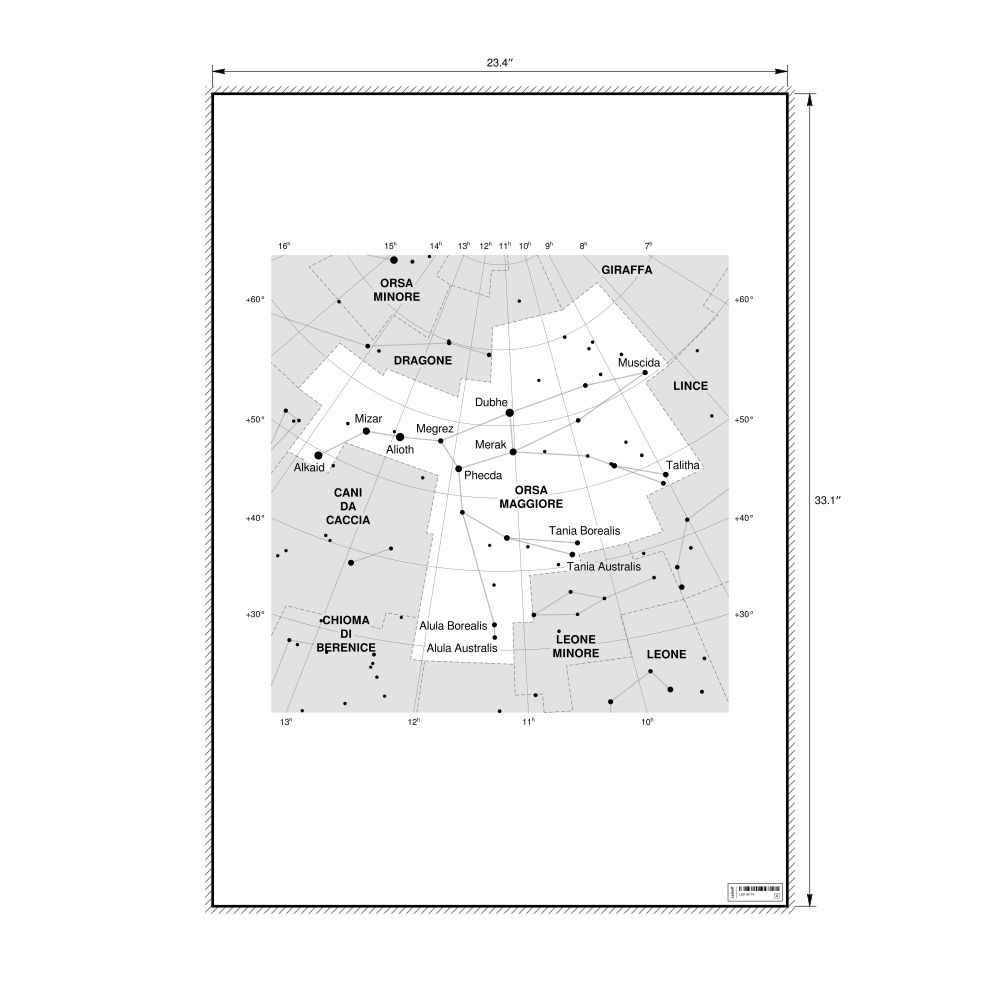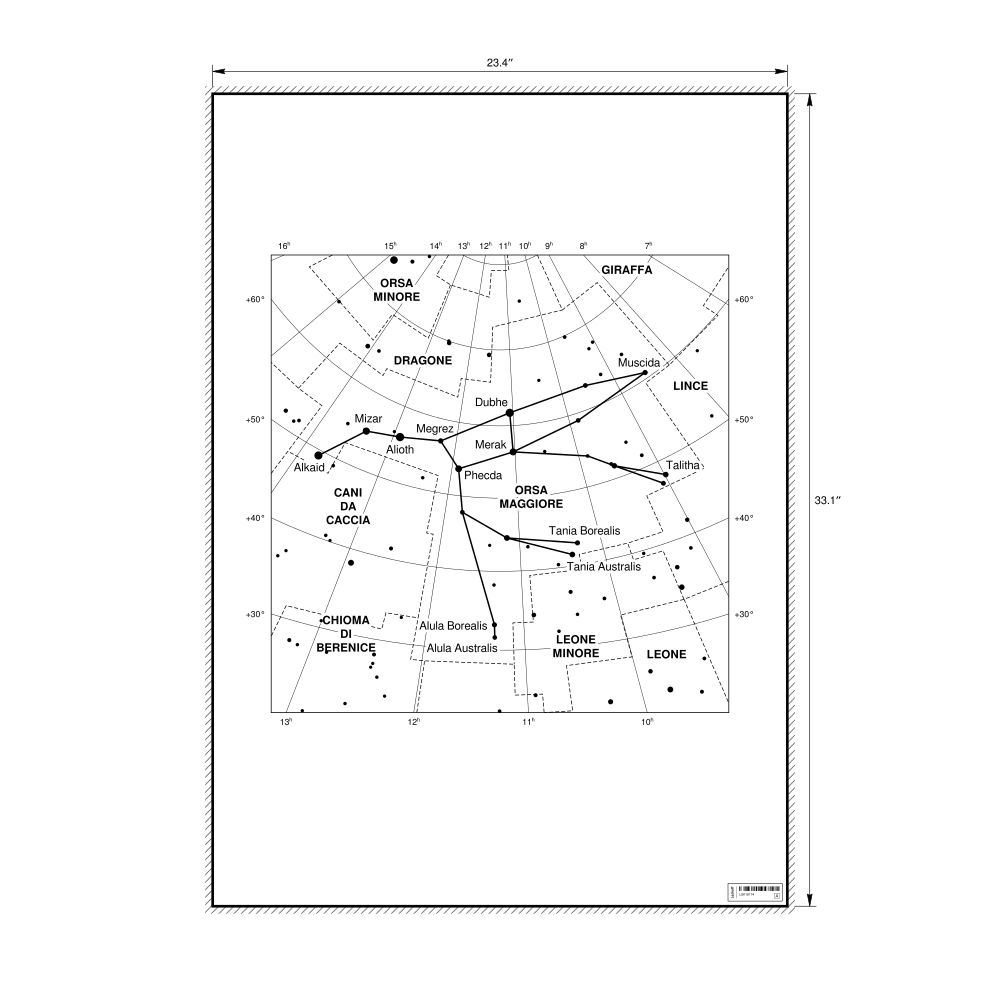 A poster featuring the Ursa Major constellation chart in Italian (Orsa Maggiore).