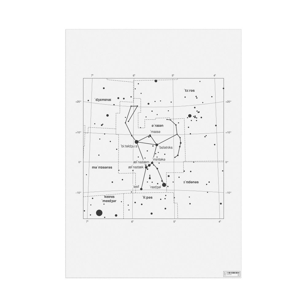 A poster featuring the Orion constellation chart in IPA (International Phonetic Alphabet) for English.