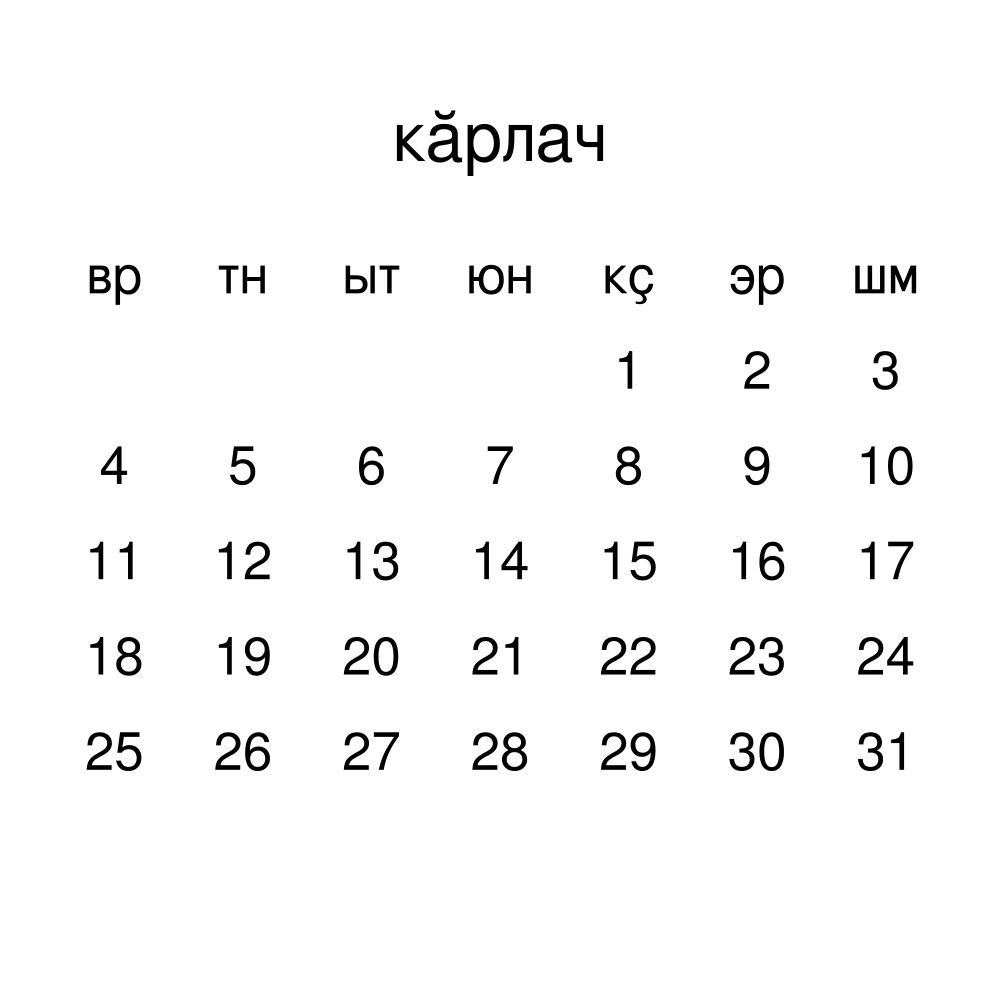 - Chuvash speakers and enthusiasts - Choose this calendar if you are looking for a simple, localized calendar in the Chuvash language. Use it in your home, office, or classroom as a regular calendar.